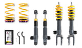 Today, more and more premium vehicles are being fitted with an electronically adaptive suspension system. Before KW DDC Plug & Play coilovers were introduced to the market, you often had to make compromises when customizing your suspension lowering, and often had to eliminate the active electronic control system and comfort features that you had paid extra for. With the adaptive KW DDC Plug & Play coilover suspensions there are no compromises to be made and you can combine the control of your standard damper system with a seamless suspension lowering and the driving dynamics tuned by KW suspensions experienced engineers. During installation, the factory electronic struts are simply replaced by KW INOX-LINE stainless steel coilover struts and the adaptive KW dampers are connected to the on-board electronics using your vehicles original plugs. Fitting a KW DDC Plug & Play coilover suspension requires no further modifications. The standard dampers can simply be replaced with the KW DDC (Dynamic Damping Control) coilover kit. The existing controls and the button installed in the vehicle interior for the operation of the damper control will now operate the KW DDC Plug & Play coilovers. For the first time, the KW DDC Plug & Play coilover kit combines the advantages of a KW coilover suspension with the convenience of the standard electronic damper controls. At the push of a button, the driver can choose between the Comfort, Normal and Sport setup optimized for the KW coilover suspension. In addition, the KW coilover suspension allows individual ride height adjustability within the tested Adjustment -angle. Our original equipment quality suspension technology -s compatible with various vehicle manufacturers. As a result, the adaptive KW DDC suspension is instantly recognized by the on-board electronics. So all the displays and controls of your factory vehicle remain fully functional but you get a completely new driving experience.
