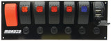 Moroso Rocker Switch Panel - Flat Surface Mount - LED w/USB - 3.388in x 9.15in -Five On/Off Switches